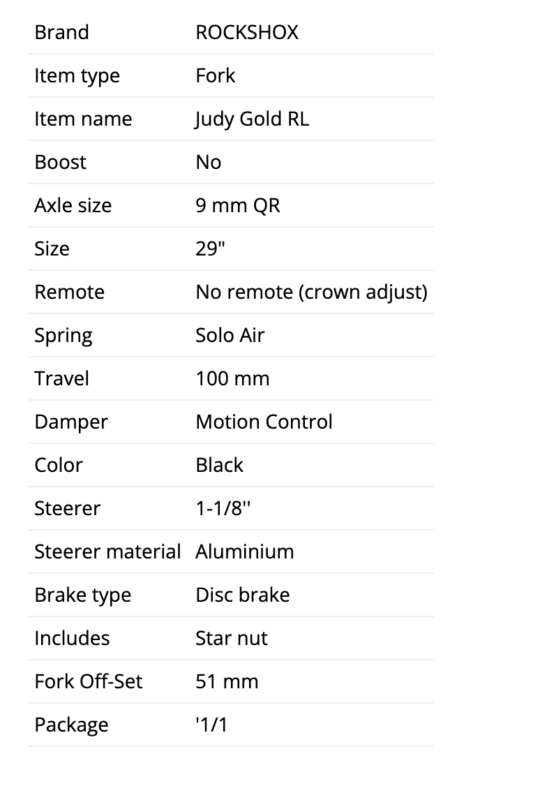 Rockshox Judy Gold RL 29", 9x100mm, straight 1 1/8'', 100mm